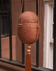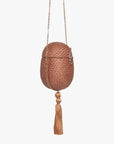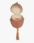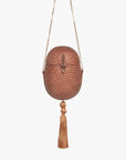 Elevate any outfit with this woven straw egg clutch with coordinating tassel.